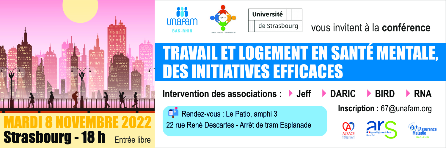 Une conférence intitulée « Travail et logement en santé mentale, des initiatives efficaces » aura lieu mardi 8 novembre à 18h au Patio sur le campus de l'Esplanade.
