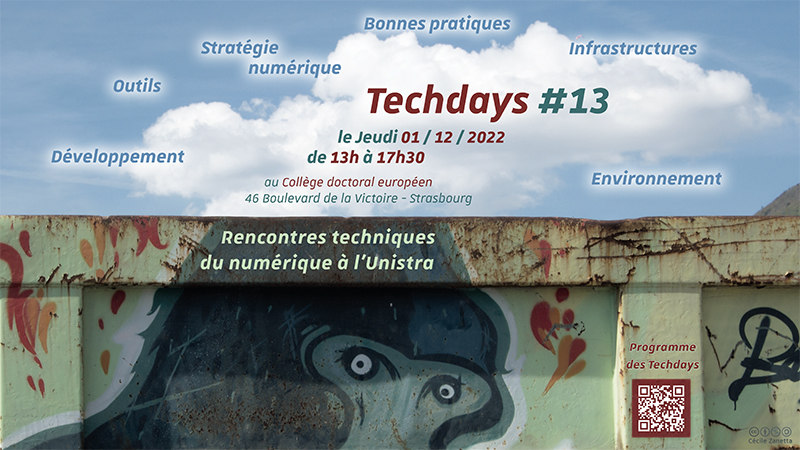 Vous êtes investi·e dans les métiers du numérique à l’Unistra (personnels de la DNum, ou du réseau Infoprox, correspondant·e numérique, logiciel ou Infrastructure, membre d’X/Stra, de Devlog, ou d’IPHC, impliqué·e dans la Science ouverte, ou doctorant·e ou étudiant·e dans un master en maths-info, à l’INSA, à l’IUT Info d’Illkirch, …) rejoignez l’événement pour échanger sur nos métiers et nos pratiques numériques.