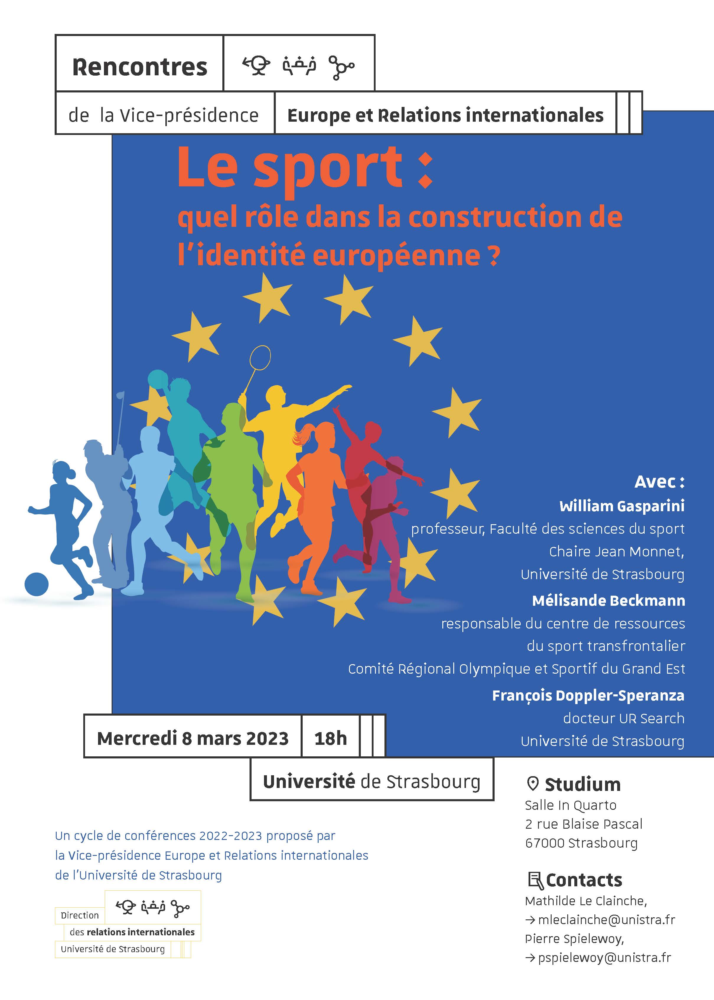 Une conférence intitulée « Le Sport : quel rôle dans la construction de l’identité européenne ? » aura lieu mercredi 8 mars à 18h au Studium.