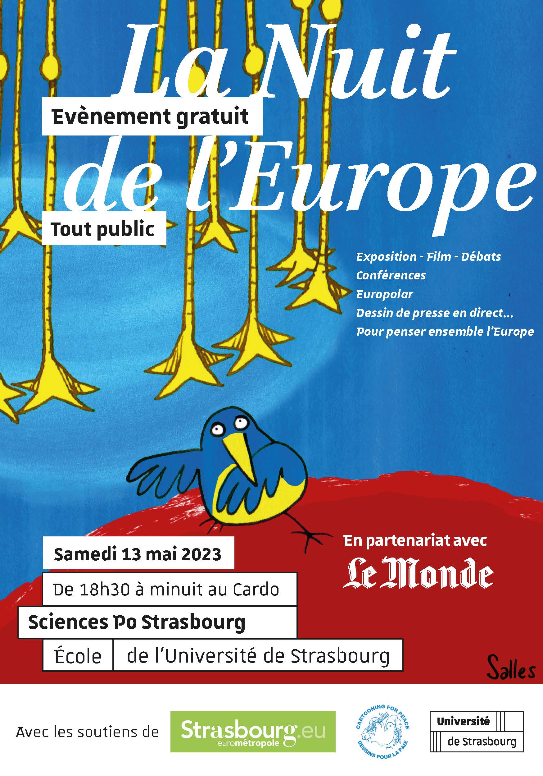 Forts du succès de la 1ère édition, Sciences Po Strasbourg et le journal Le Monde s’associent de nouveau pour la 2e édition de « La Nuit de l’Europe » samedi 13 mai de 18h30 à minuit à Sciences Po Strasbourg pour penser ensemble l'Europe.