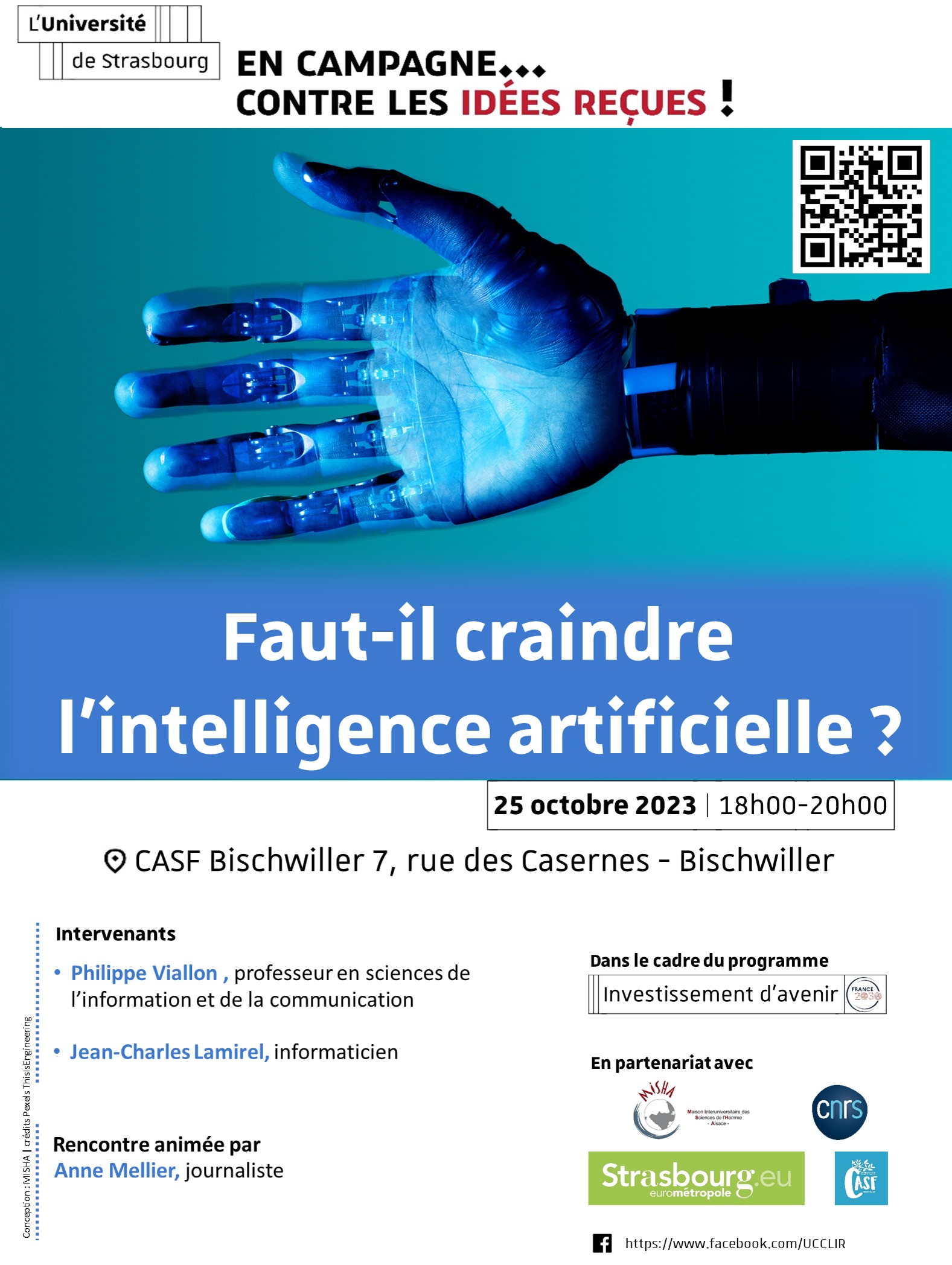Une journée d'études intitulée « Faut-il craindre l'intelligence artificielle ? » aura lieu mercredi 25 octobre à 18h à Bischwiller.