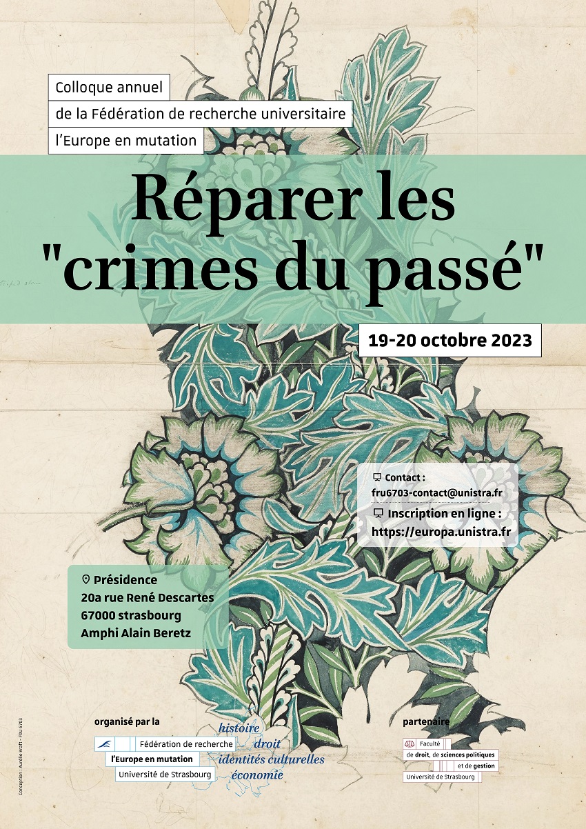 Un colloque annuel de la Fédération de recherche universitaire l'Europe en mutation, intitulé « Réparer les "crimes du passé" » aura lieu jeudi 19 octobre à 9h30 à la présidence sur le campus de l'Esplanade.