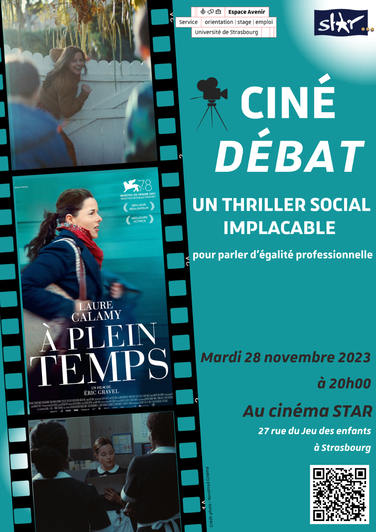 Un film suivi d'un débat sur l'égalité professionnelle aura lieu mardi 28 novembre à 20h au cinéma Star. C'est la deuxième séance ciné-débat d'Espace Avenir, autour du film « À plein temps », réalisé par Éric Gravel et projeté au cinéma STAR.