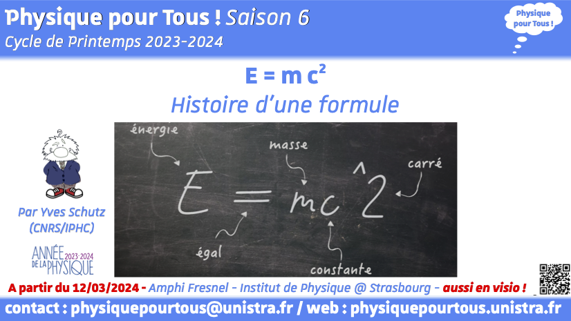 Cycle de Printemps "E = mc2, Histoire d’une formule", proposé par Yves Schutz (CNRS/IPHC) à partir du mardi 12 mars 2024 pour 5 cours (1 cours par semaine)