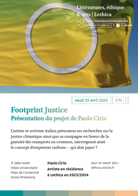 Pendant sa résidence, Paolo Cirio a lancé une campagne pour aborder l'éthique du changement climatique, visant à la rendre accessible à tous. Cette campagne, intitulée Footprint Justice, jeu de mot sur le concept de carbon footprint (empreinte carbone), plaide en faveur de transports en commun gratuits pour les usagers et entièrement financés par la taxation des géants des énergies fossiles. Provocation artistique, la campagne est promue dans les tramways, les bus et les trains à l'aide de dépliants, dans les rues à l'aide d'affiches et sur les réseaux sociaux à l'aide de vidéos. Par son ironie, le projet cherche à populariser les questions éthiques derrière le concept d'empreinte carbone, en soulignant la responsabilité des compagnies pétrolières comme TotalEnergies, et en critiquant la faiblesse des politiques européennes en matière de climat. Il a conçu une pétition sous forme de cartes postales envoyées à la Commission européenne, plaidant pour une taxe carbone plus équitable à travers l'Union Européenne ainsi que pour la subvention des transports en commun plutôt que les énergies fossiles. Pour cette initiative, Paolo Cirio a collaboré avec des groupes français d’activistes pour le climat.