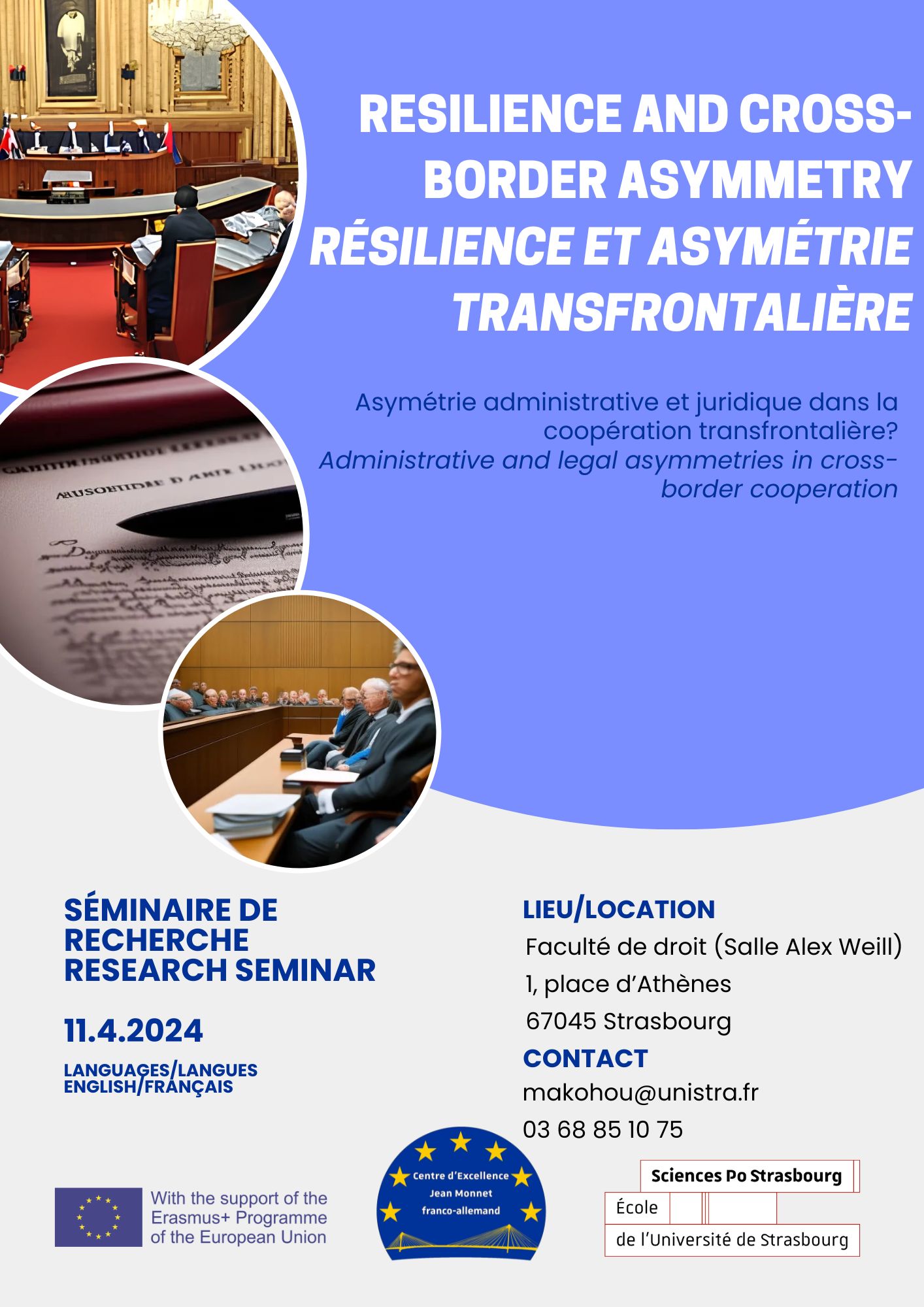 Un Séminaire intitulé « Résilience et l'asymétrie transfrontalière » aura lieu jeudi 11 avril à 8h30 à la Faculté de droit sur le campus de l'Esplanade.