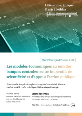 Une conférence intitulée « Les modèles économiques au sein des banques centrales : entre impératifs de scientificité et d'appui à l'action publique » aura lieu jeudi 16 mai à 17h au Nouveau Patio.