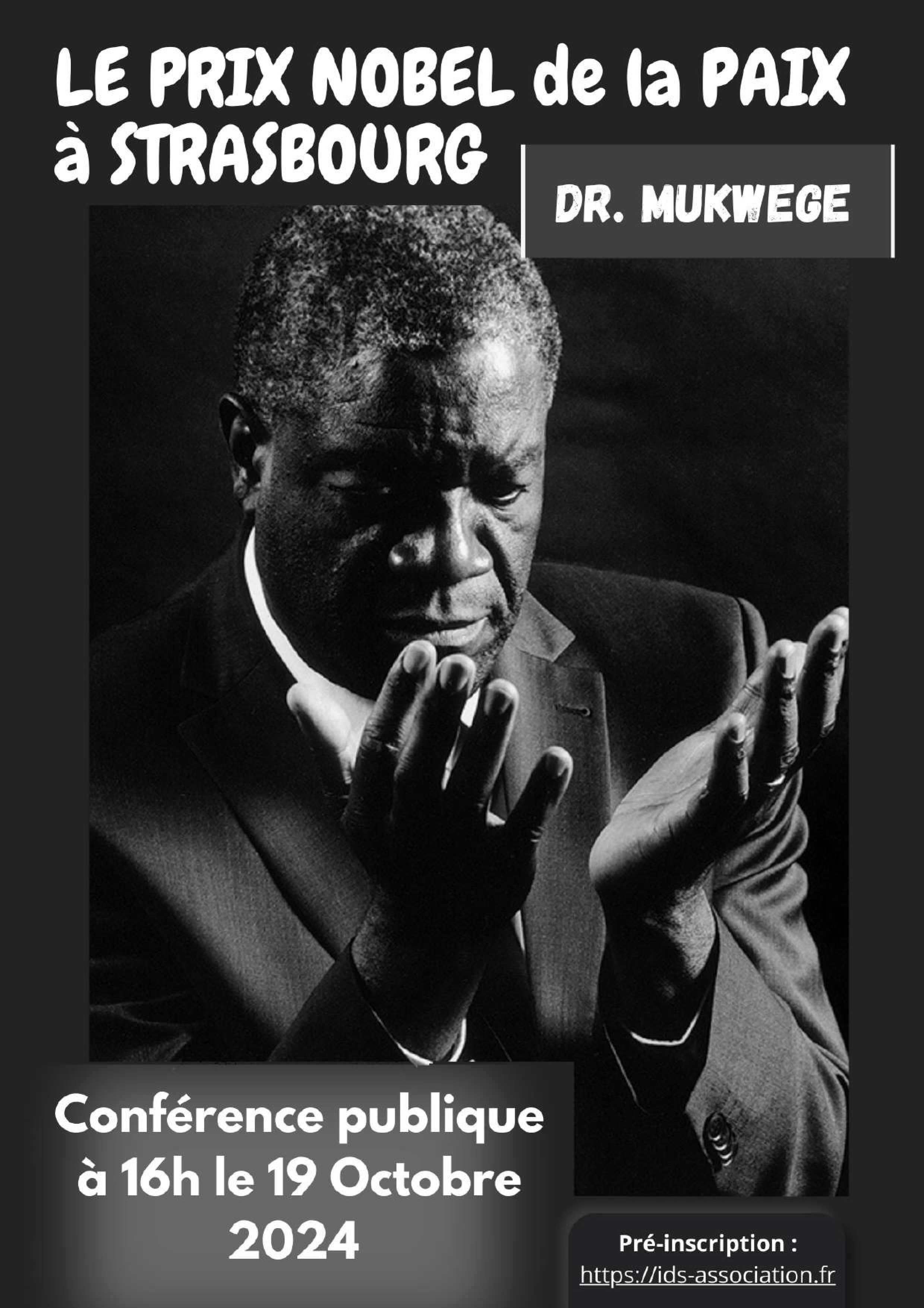 Gynécologue congolais engagé pour les droits des femmes victimes de violences sexuelles et militant pour la justice et la paix, le Docteur Denis Mukwege est un porte-parole universel pour la défense des droits humains en République démocratique du Congo et dans le reste du monde. Le Docteur Mukwege, Prix Sakharov en 2014 et Prix Nobel de la paix en 2018, sera présent à Strasbourg le samedi 19 octobre 2024 à 16h pour une conférence publique sur le thème « La Justice, la Paix et le respect des Droits humains : est-ce possible en 2024 ? » à l’Université de Strasbourg, au PEGE (61 Avenue de la Forêt Noire à Strasbourg). Les personnes intéressées sont priées de s’inscrire via association-ids.fr