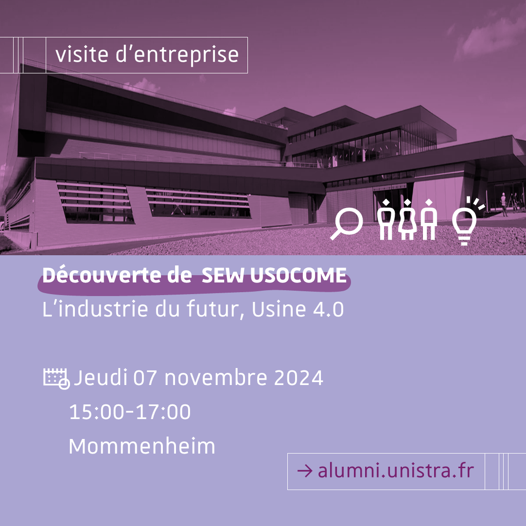 Le réseau Alumni organise la visite des locaux de l'entreprise Sew Usocome Brumath, le 7 novembre de 15 à 17h.