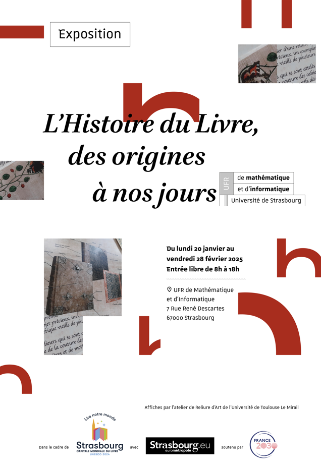 Exposition d’affiches « L’Histoire du Livre, des origines à nos jours » aura lieu à partir du lundi 20 janvier jusqu'au vendredi 28 févirer l'UFR de Mathématique et d’Informatique sur le campus de l'Esplanade.