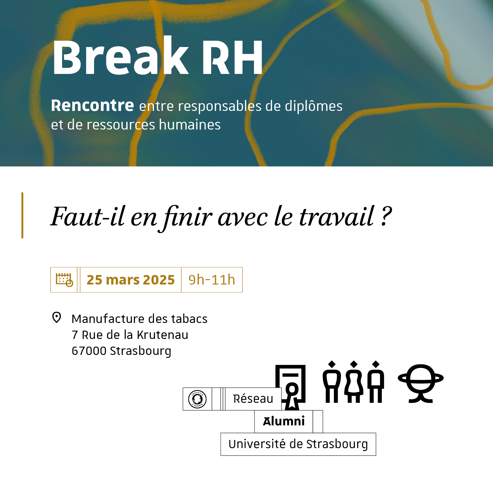 Un évènement dans le cadre du Break RH intitulé « Faut-il en finir avec le travail ? » aura lieu mardi 25 mars à 9h à la Manufacture des Tabacs.