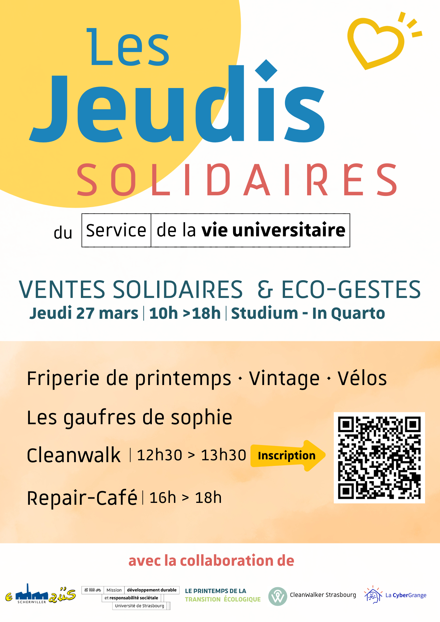 Jeudi 27 mars à partir de 10h au Studium, venez au jeudi solidaire pour allier bonnes affaires et éco-gestes !