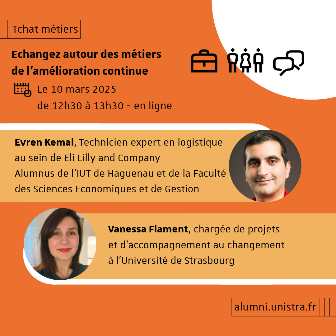Un Tchat métiers intitulé « Travailler dans l'amélioration continue » aura lieu lundi 10 mars à 12h30 en ligne.