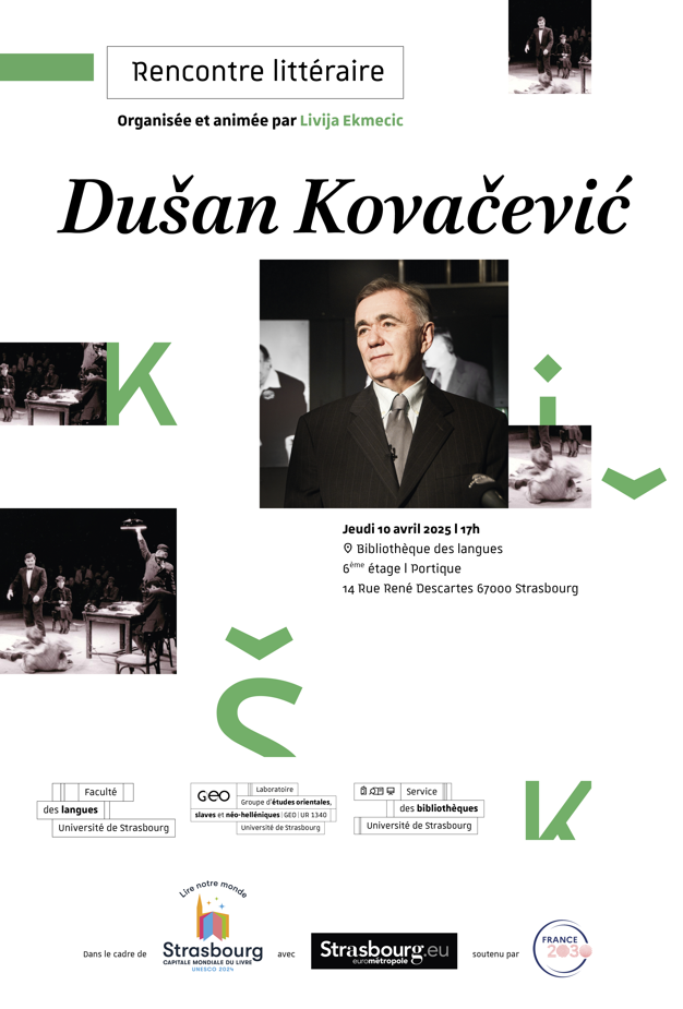 Dušan Kovačević est une légende vivante du théâtre et du cinéma serbes. Un écrivain dont les œuvres sont jouées dans les théâtres en Serbie et à l'étranger depuis 1972. Il a fait son entrée dans le monde du théâtre à la fin de ses études avec les pièces Radovan III et Les Marathoniens font un tour d'honneur, et depuis, une renommée quasi mythique l'accompagne. Ses films sont devenus culte, parmi lesquels Qui chante là-bas ? se distingue particulièrement. Dušan Kovačević est une figure importante de la culture serbe, notamment parce qu'il est un artiste qui a fait face à la forte censure du communisme yougoslave. Le scénario du film Underground, réalisé par Emir Kusturica, lui a valu la Palme d'Or à Cannes.