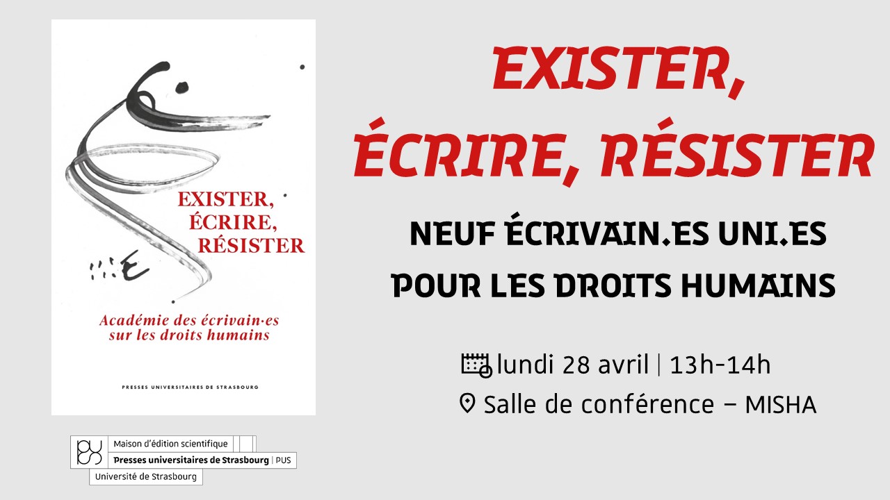Rendez vous lundi 28 avril entre 13h et 14h, à Maison interuniversitaire des sciences de l'homme - Alsace (Misha) sur le campus de l’Esplanade.