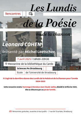 - 7 avril 2025 : « Poésie autour de l’œuvre de Leonard Cohen »