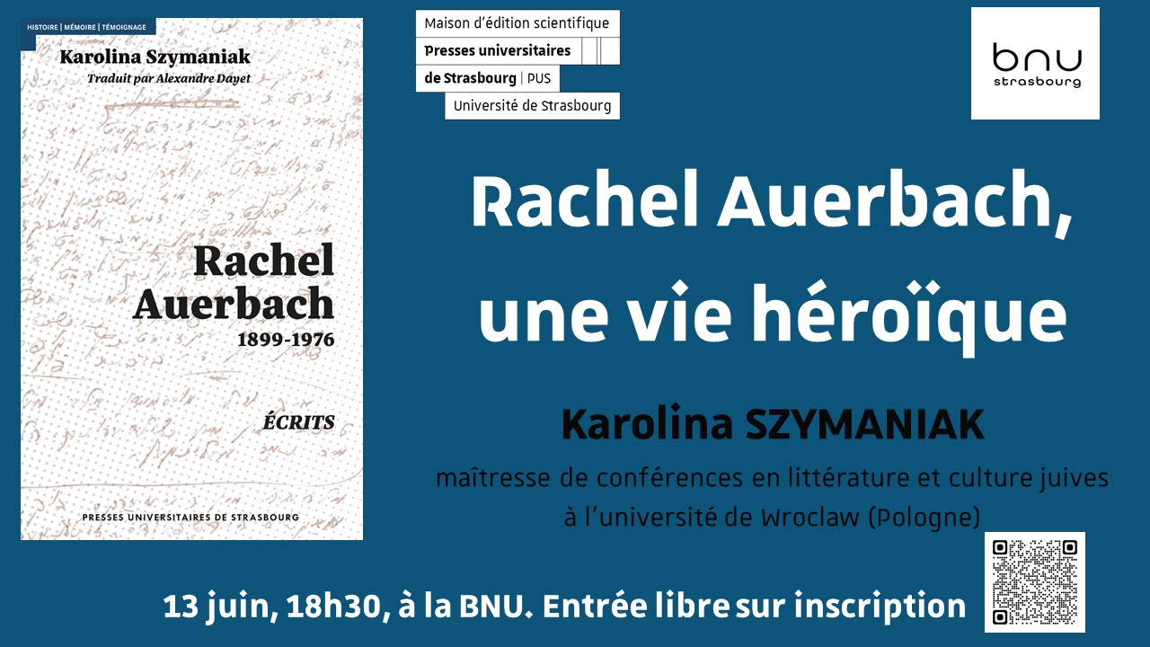 Une conférence intitulée « Rachel Auerbach, une vie héroïque » aura lieu vendredi 13 juin à 18h30 à la Bibliothèque nationale universitaire.