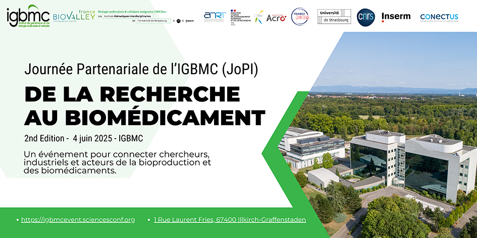 Le 4 juin prochain, l’IGBMC accueillera startups, chercheurs, entreprises, associations et structures d’accompagnement pour une journée dédiée aux collaborations public/privé dans le domaine du biomédicament.