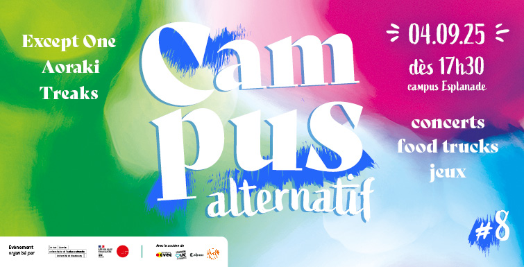 Au programme de cette 8ème édition de Campus Alternatif : le trio nantais Treaks figure montante de la scène post punk (noise punk), Aoraki (indie pop) et Except One (rock alternatif), finaliste du tremplin musical Pulsations. Buvette au rendez-vous !